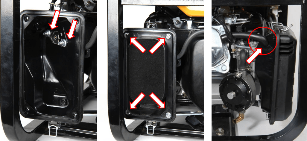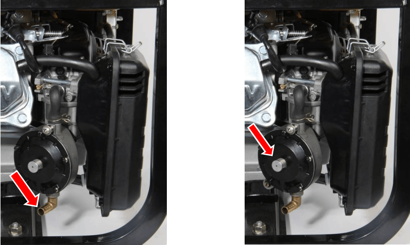 На первом фото представлен внешний вид генератора до момента установки газового комплекта. На втором фото исходный вариант — то, как должен выглядеть генератор после установки газового редуктора. Приступим к самой установке.