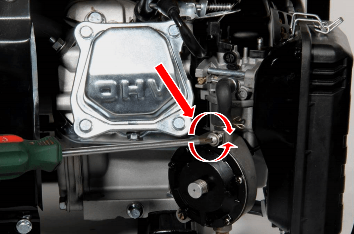 Для этого повторно и плавно закручивайте или же откручивайте регулировочный винт на газовом редукторе генератора: в зависимости от характера исходной работы двигателя регулировка предусматривает как увеличение подачи — на двигателях большего объема так и уменьшения — на двигателях меньшего рабочего объема.